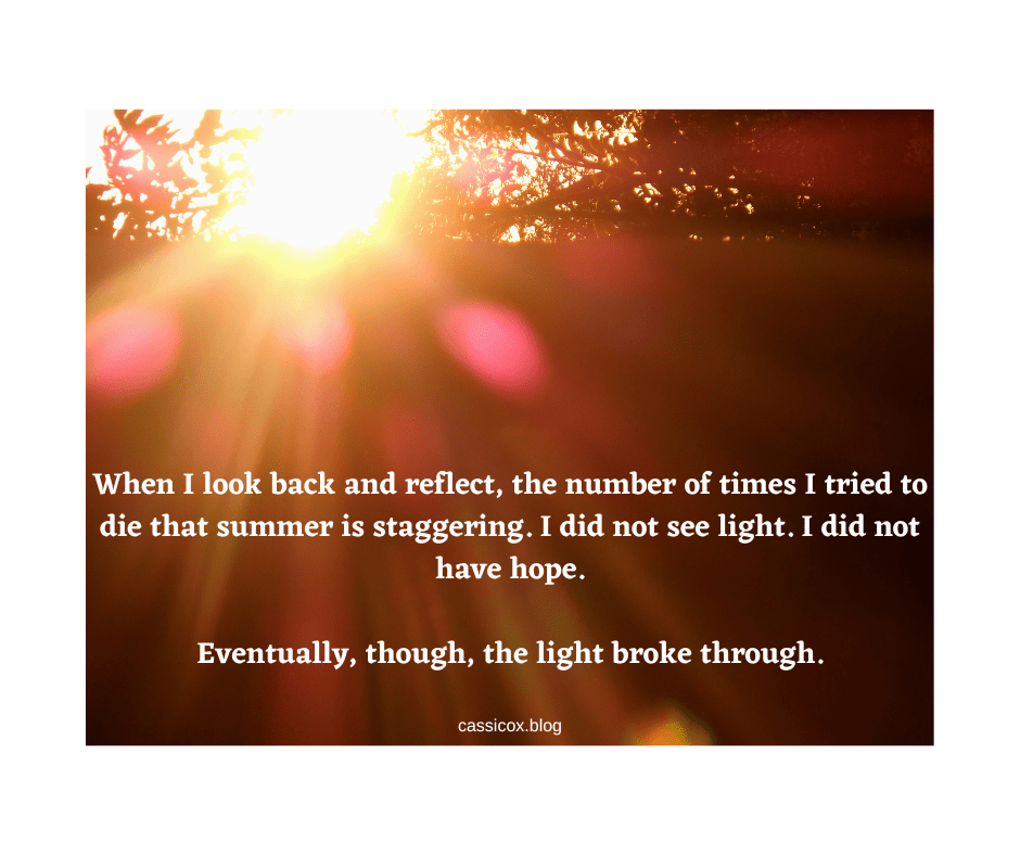 By: Cassi Cox Eighteen Years. It seems like so much and so little all at the same time. Eighteen years ago this May I graduated from high school. It was supposed to be the best summer ever, but instead I experienced my first real battle with depression. I’ve had a few major depressive incidents inContinue reading “Eighteen Years”